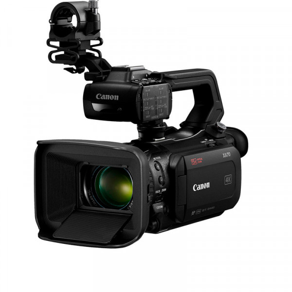 la camcorder Canon XA70 transmite contenido en calidad HD, y puede añadir una marca de fecha y hora con la grabación OSD. Dos terminales XLR en un asa extraíble y PCM lineal de 4 canales ofrecen opciones de audio profesionales.