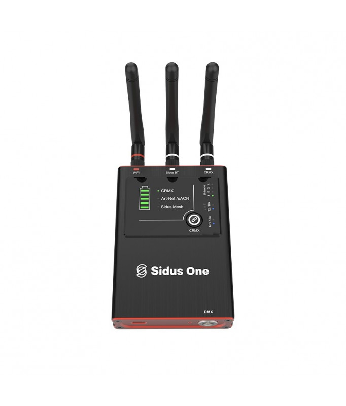 Se conecta a cualquier aplicación de iluminación y está optimizado para Sidus Link Pro. Incluso conecta varios Sidus One para hasta 4 universos de control. Completa tu ecosistema Sidus Link. Multiverso DMX: el transceptor Sidus One es compacto y ampliable, conéctalo a hasta tres transceptores Sidus One adicionales, creando cuatro universos para satisfacer las necesidades DMX más exigentes para trabajos más grandes o configuraciones de iluminación más complejas. Cada opción en tu mano: elige su función, transmisor, receptor, enrutador. Ya sea que desees transmitir CRMX, DMX o Bluetooth o recibir Art-Net, sACN, Node o Bluetooth, Sidus One lo hace todo. Y con una batería de 18 horas de autonomía, lo hará durante todo el día. Simplicidad refinada: sácalo de la caja y enciéndelo. Un botón para vincular con tus luces. Móntalo sobre un soporte. Sujétalo a tu cinturón y llévalo contigo.