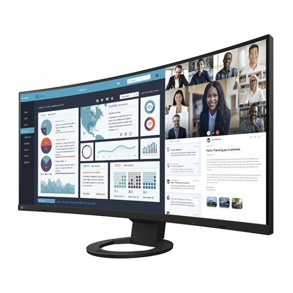 El EV3895 de 37,5 pulgadas es un monitor ultraancho curvo UWQHD + (3840 x 1600) con una relación de aspecto de 24:10. El monitor tiene casi el triple de píxeles para trabajar en comparación con los monitores Full HD. Los usuarios pueden organizar libremente múltiples aplicaciones en su amplia pantalla sin los molestos biseles típicos de las configuraciones de múltiples monitores.