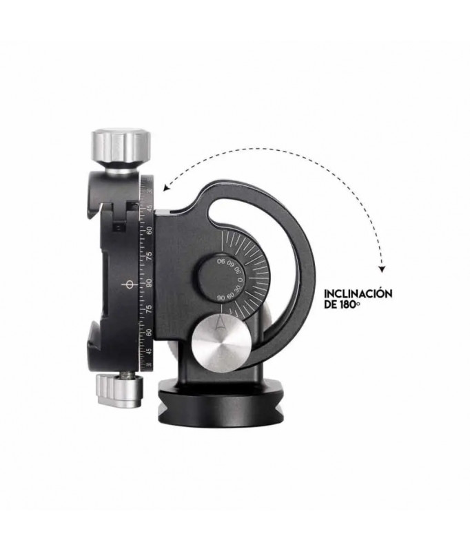 - Para uso con monopie dispone de movimiento de inclinación preciso de 180º.